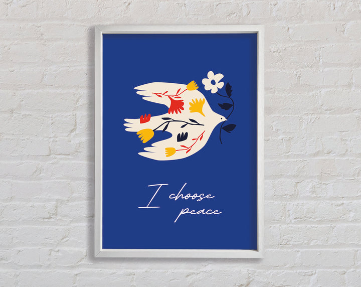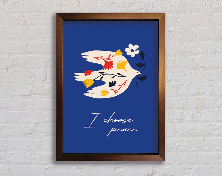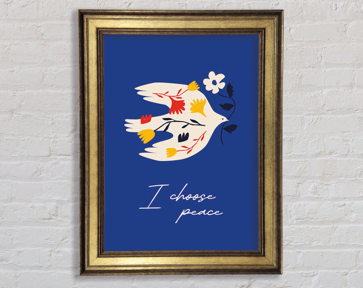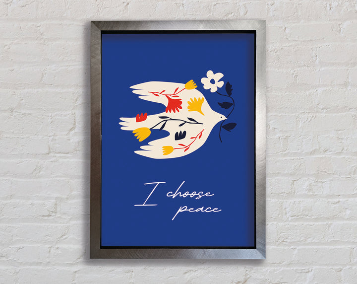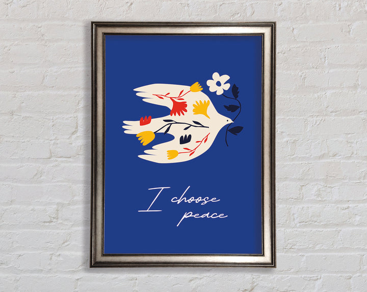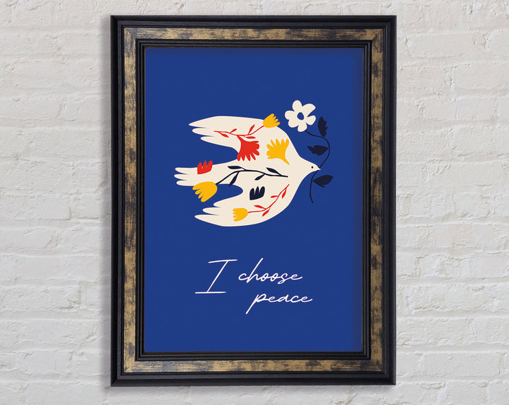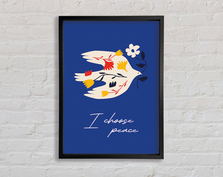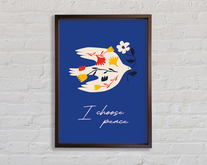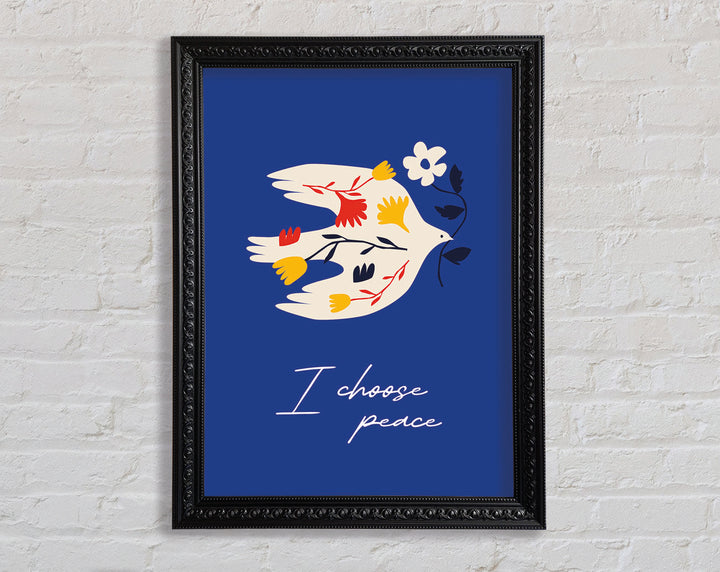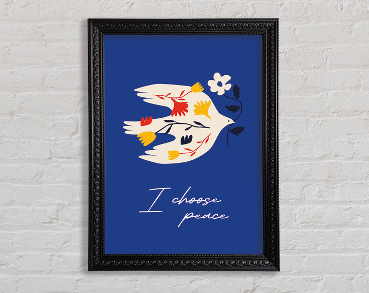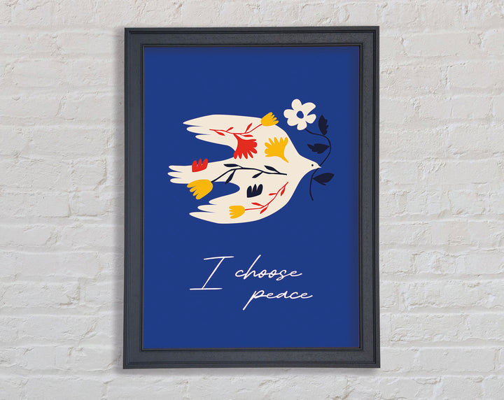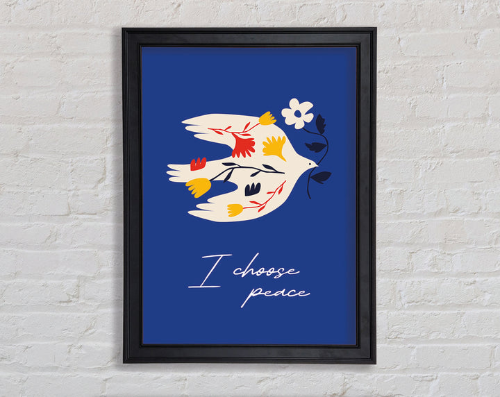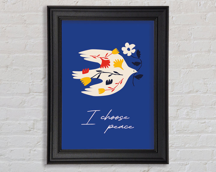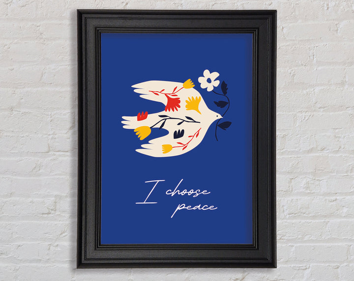 Introducing the "I Choose Peace" Framed Print, a beautiful piece of framed art that brings tranquility to any space. Handcrafted with care in the United Kingdom, this artwork is available in six sizes, from small to oversized, ensuring a perfect fit for any room. The print comes in a variety of colors, allowing you to match it seamlessly with your existing decor.