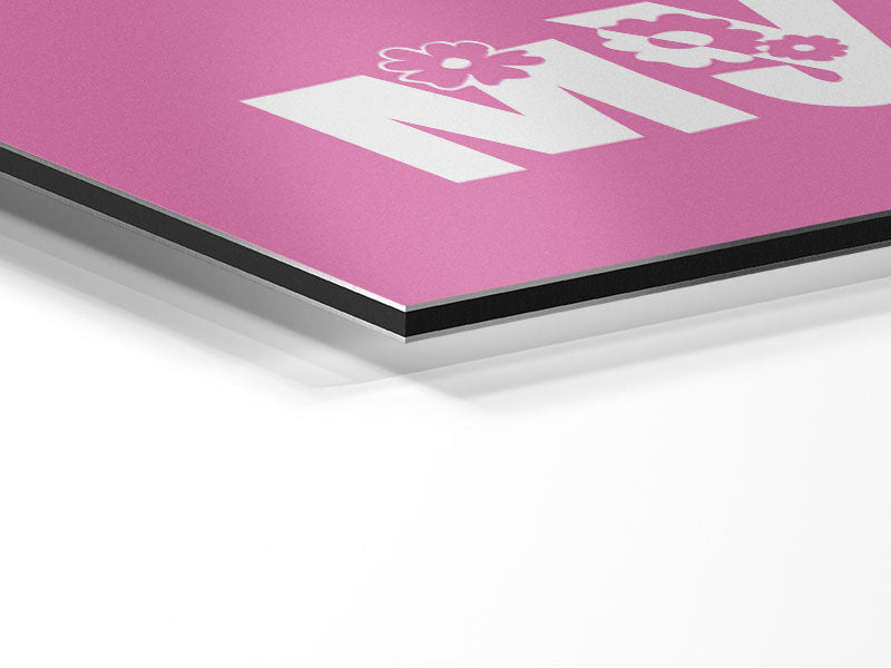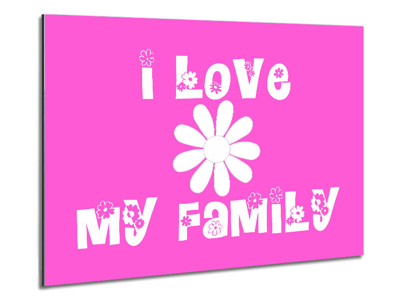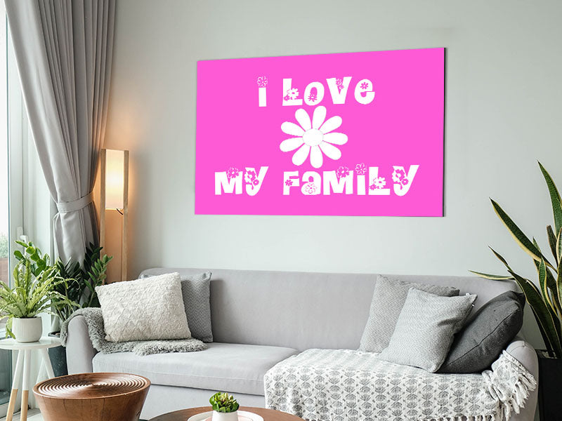 I Love My Family Vivid Pink Printed on brushed aluminium dibond. A modern way to display art and easy to maintain.