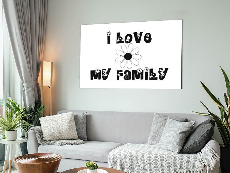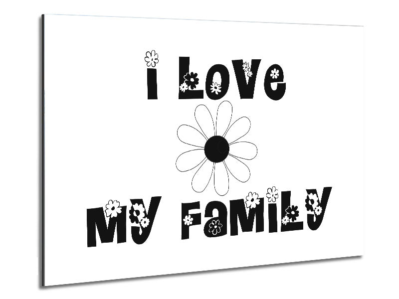 I Love My Family White Printed on brushed aluminium dibond. A modern way to display art and easy to maintain.