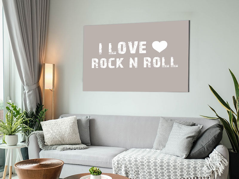 I Love Rock N Roll Beige Printed on brushed aluminium dibond. A modern way to display art and easy to maintain.