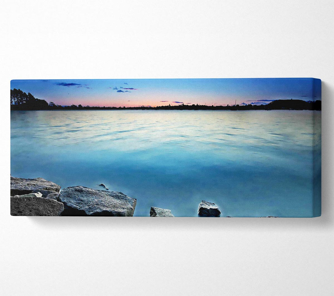 Picture of Ice Blue Ocean Rocks Panoramic Canvas Wall Art