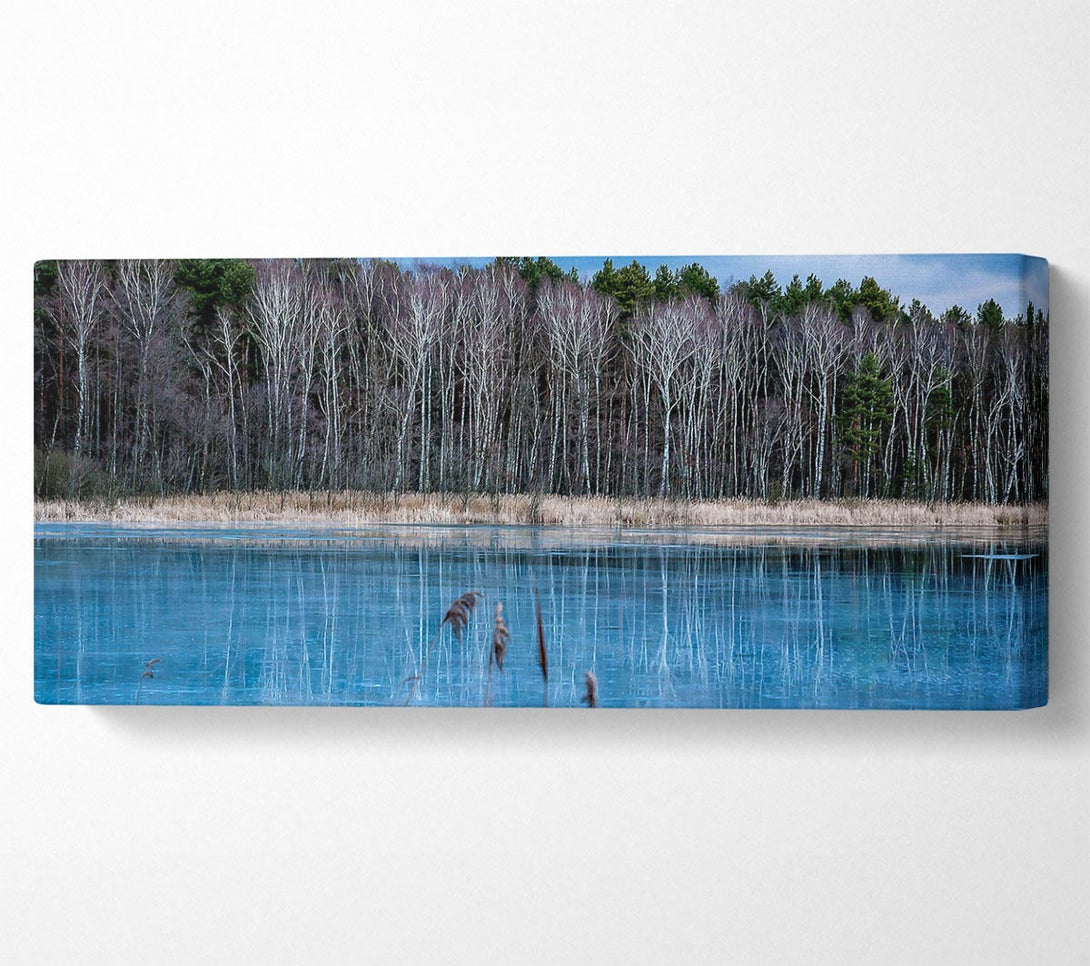 Ice Lake canvas, printed on coated polyester canvas. Mounted on to a 44mm box frame, ready to hang.