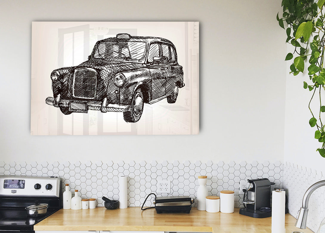 Iconic Black Cab acrylic print, UV printed onto 5mm thick acrylic glass. Comes with everything you need to hang on your wall.