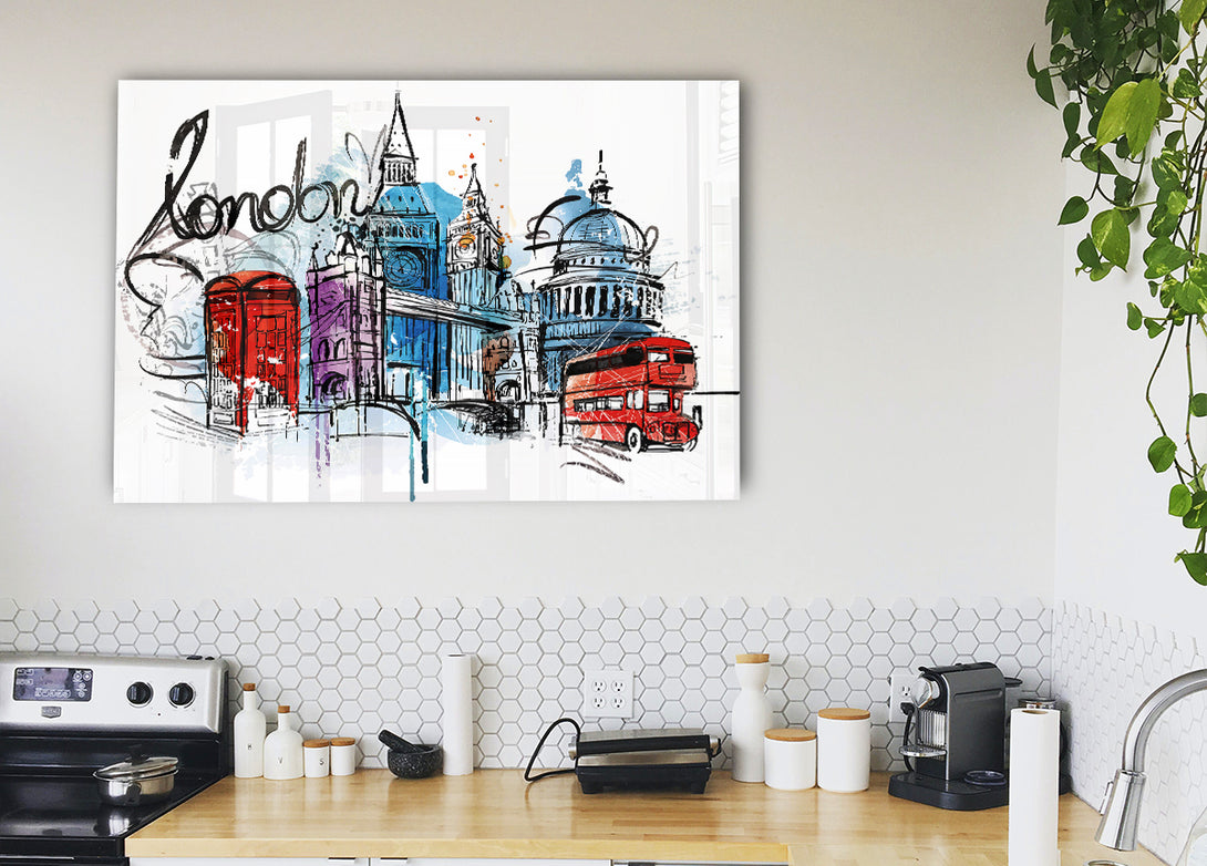 Iconic London Sites acrylic print, UV printed onto 5mm thick acrylic glass. Comes with everything you need to hang on your wall.