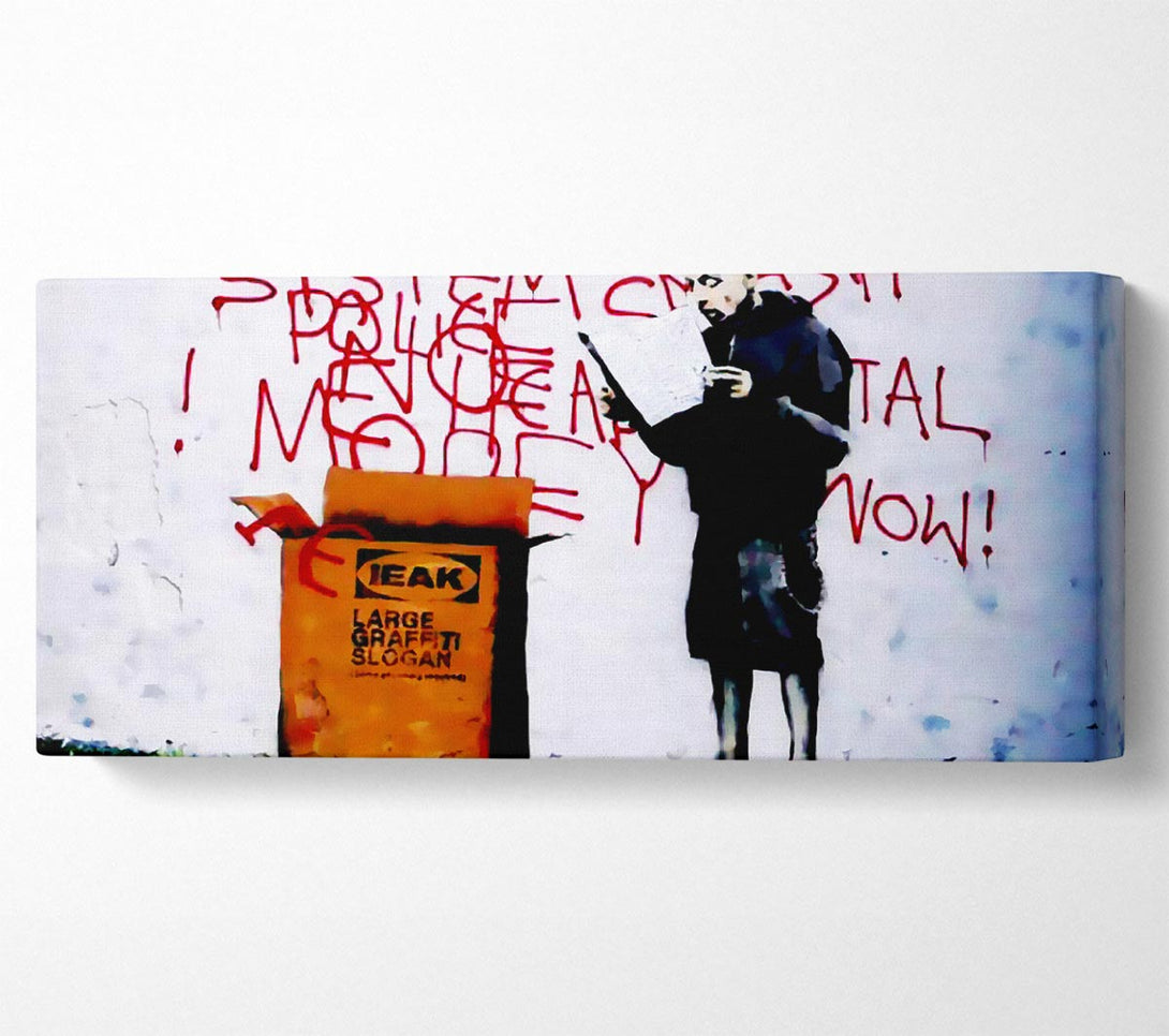 Ieak Instructions canvas, printed on coated polyester canvas. Mounted on to a 44mm box frame, ready to hang.