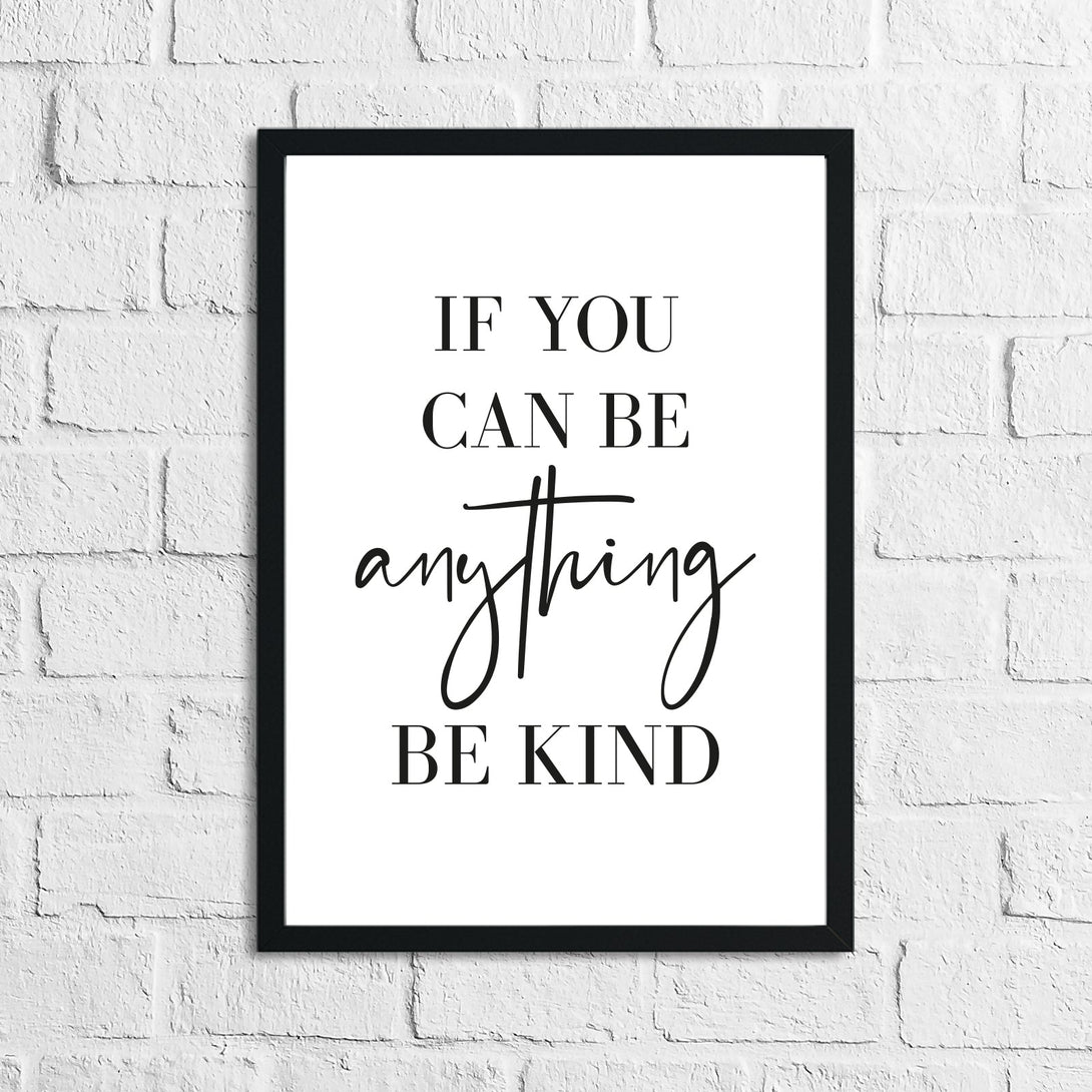 If You Can Be Anything Be Kind Inspirational Wall Decor Home Quote Print