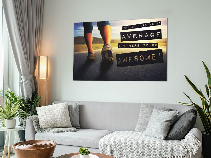 I'm Not Here To Be Average Printed on brushed aluminium dibond. A modern way to display art and easy to maintain.