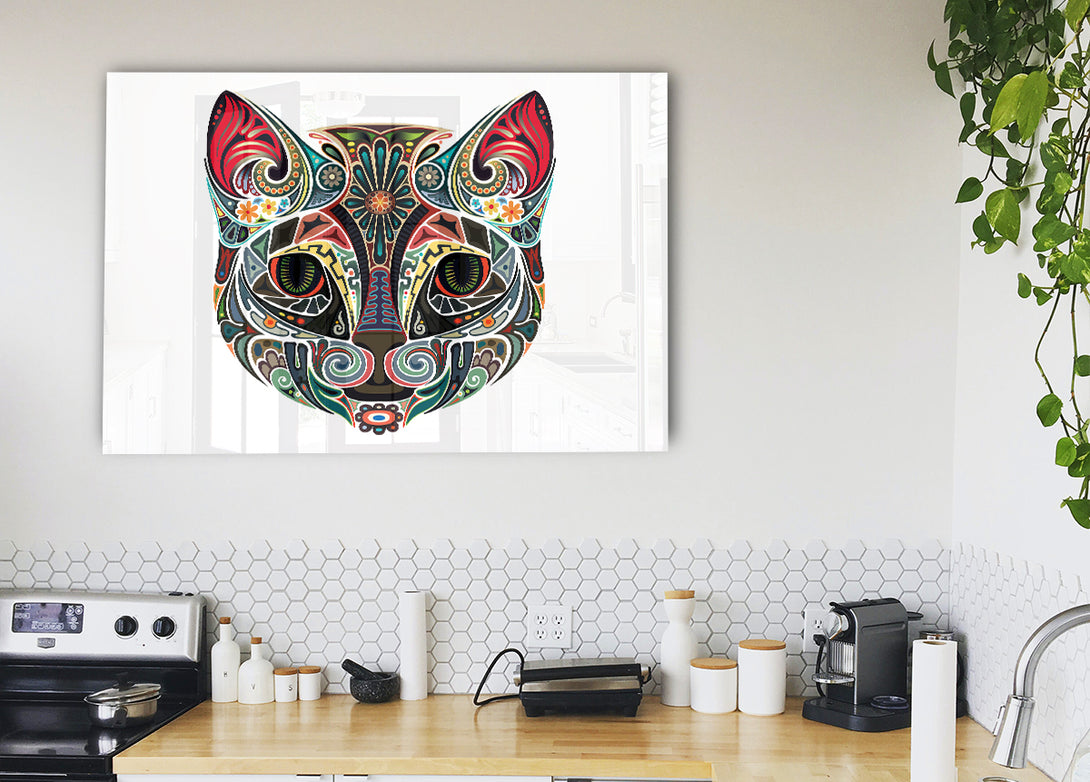 Indian Cat acrylic print, UV printed onto 5mm thick acrylic glass. Comes with everything you need to hang on your wall.