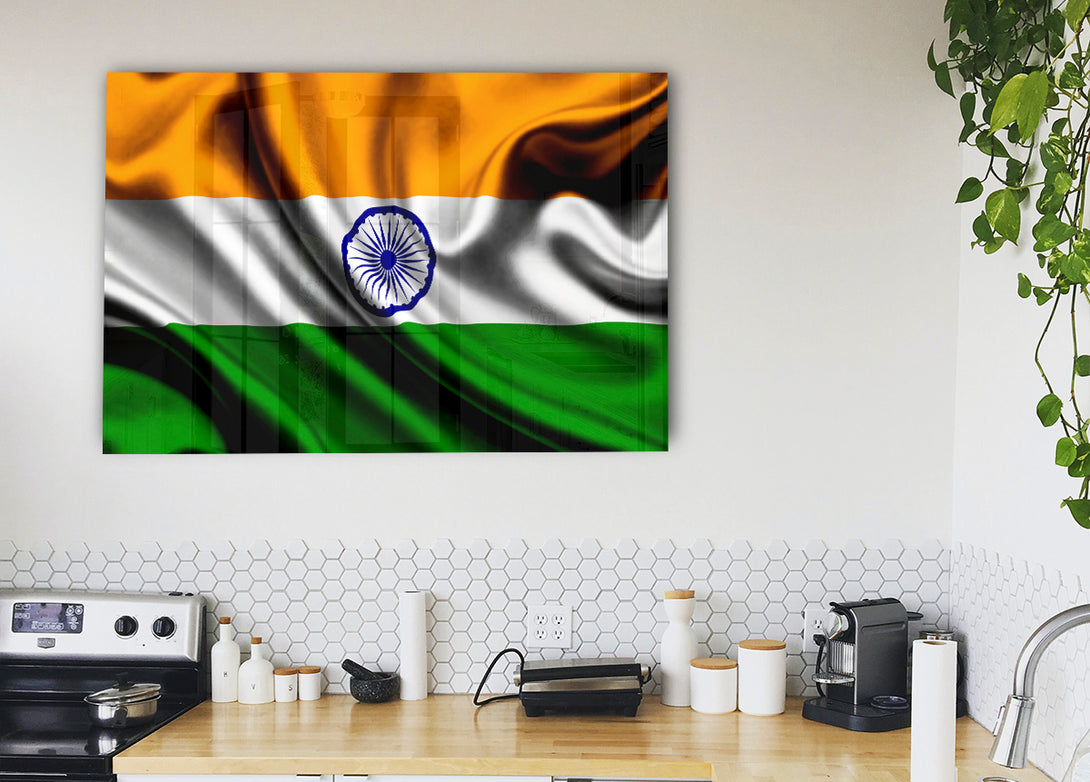 Indian Flag acrylic print, UV printed onto 5mm thick acrylic glass. Comes with everything you need to hang on your wall.