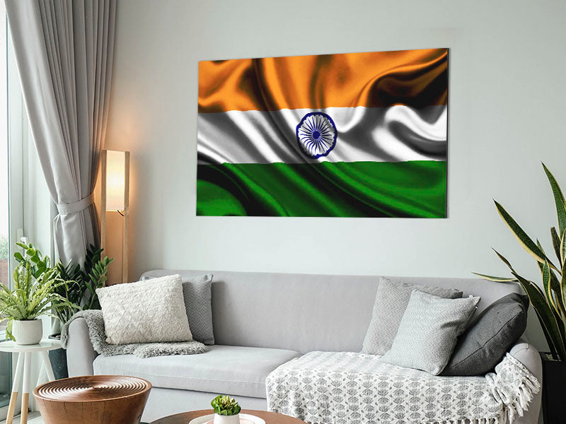 Indian Flag Printed on brushed aluminium dibond. A modern way to display art and easy to maintain.