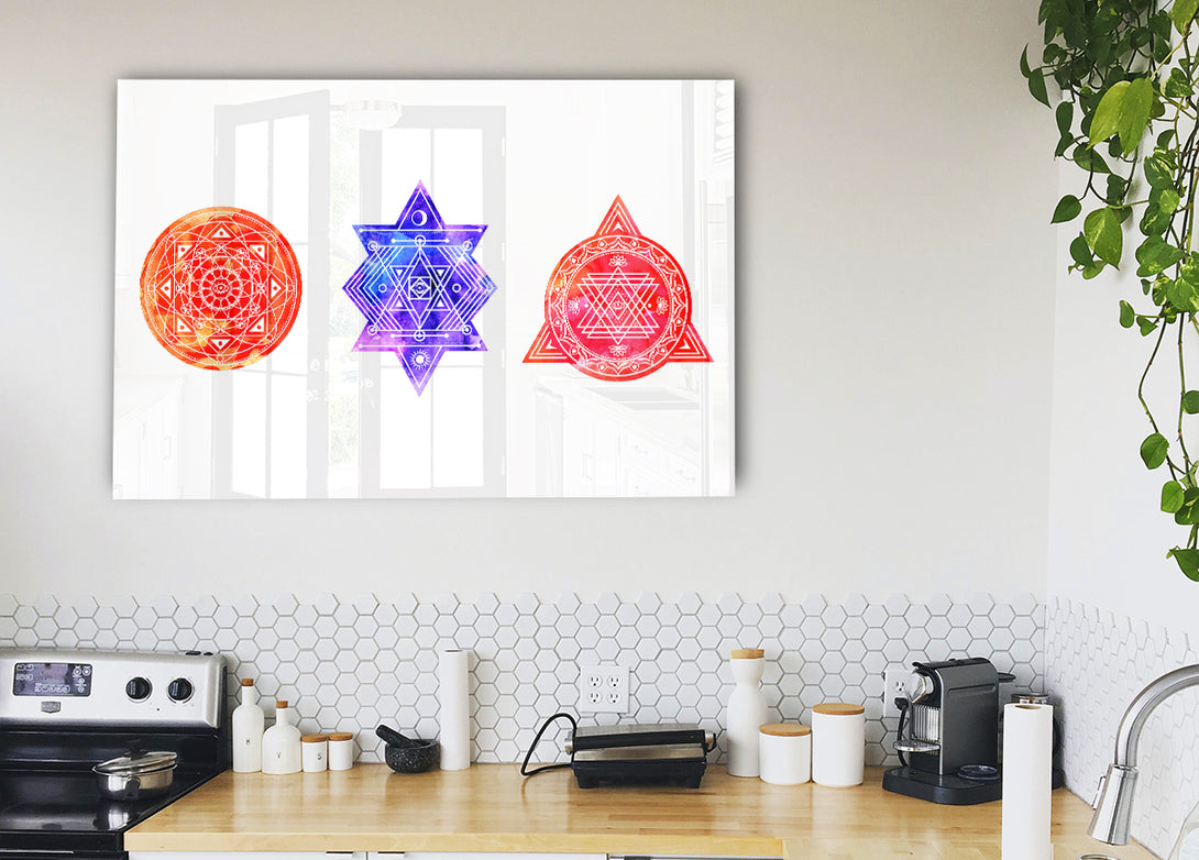 Indian Symbols acrylic print, UV printed onto 5mm thick acrylic glass. Comes with everything you need to hang on your wall.