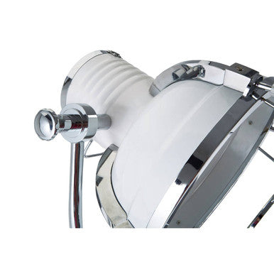 The tripod lamp is made from durable metal and given a contemporary chrome and white finish ensuring to capture that industrial appeal. The legs are height adjustable, while the lamp can be tilted, allowing you to focus the light accurately in the direction you want.