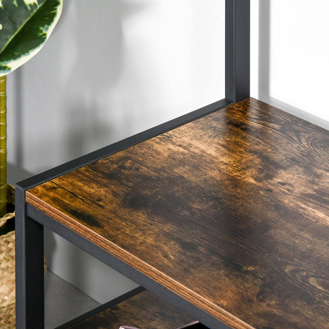 Keep your coats, outerwear, bags and shoes well organized with our industrial hall tree shoe bench from HOMCOM. This garment rack with 12 hooks for hanging your coat and 3-tier shoe stool for placing shoes or offering seat when changing your shoes. Crafted from particle board with metal frame, it is durable in use. Equipped with anti-toppling device, it will be stable and safe. Buy it and youll never misplace anything again!