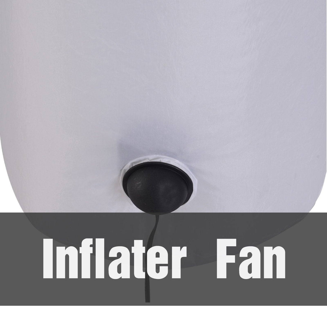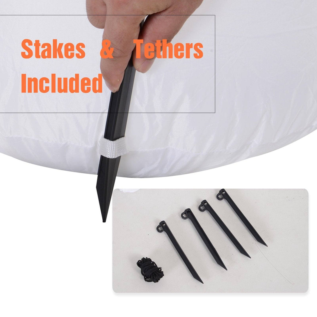 - Accessary: 1 x 1.8m inflatables, 1 x internal fan, 2 x tether ropes, 4 x ground stakes, 1 x sandbag