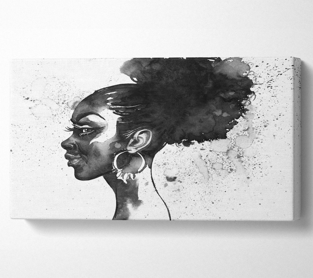 Ink Drawing Face wide canvas, printed on coated polyester canvas. Mounted on to a 44mm box frame, ready to hang.