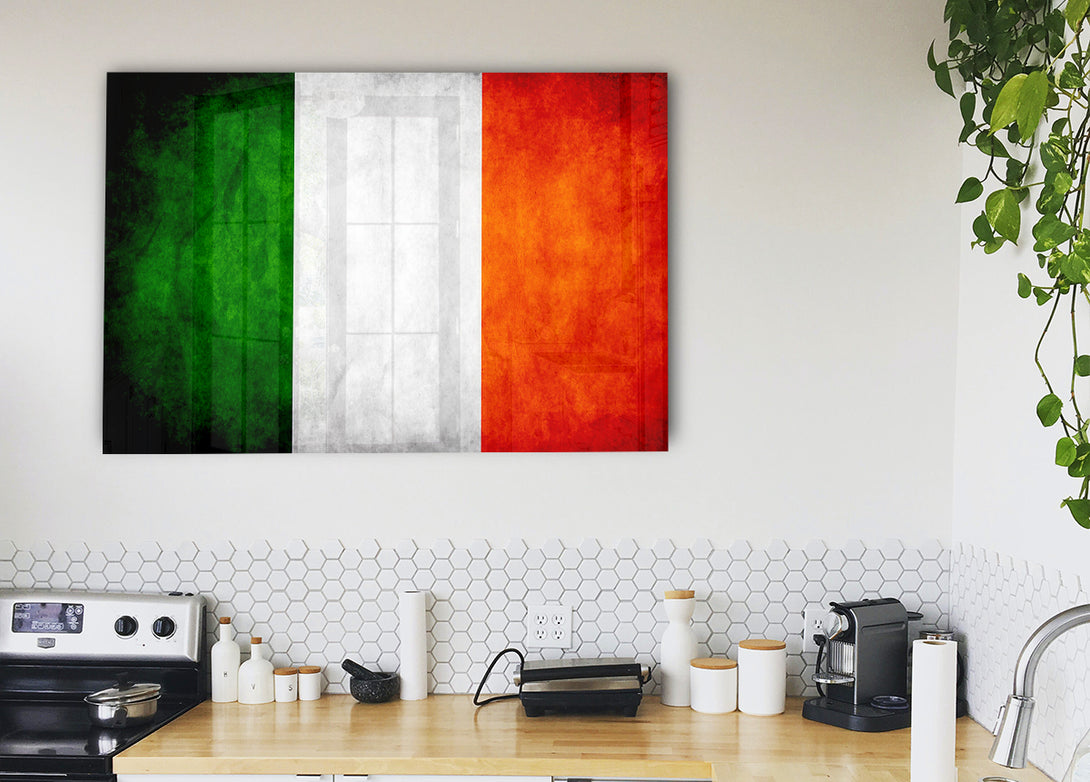 Irish Flag acrylic print, UV printed onto 5mm thick acrylic glass. Comes with everything you need to hang on your wall.