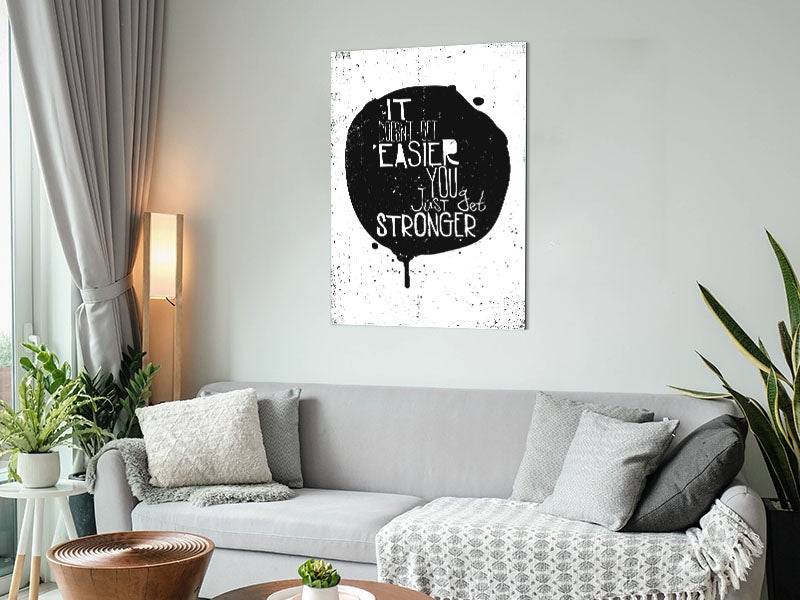 It Doesn't Get Easier 1 Printed on brushed aluminium dibond. A modern way to display art and easy to maintain.