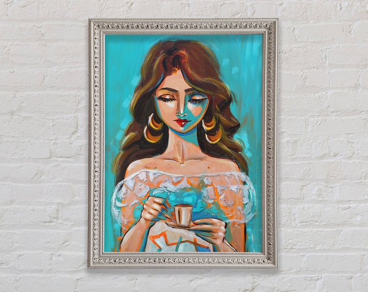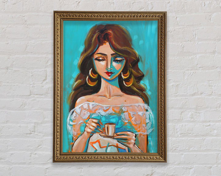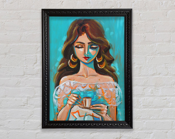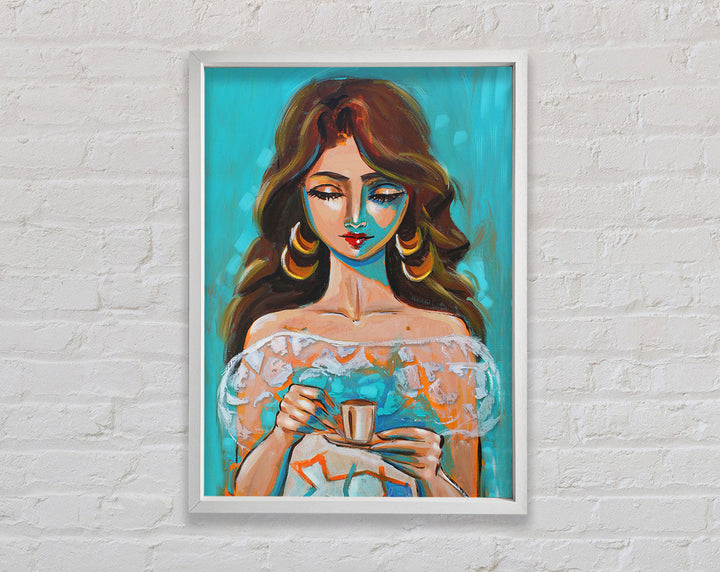 Choose from a variety of colors to match your decor. Each print is handmade in the United Kingdom, ensuring high-quality craftsmanship. The print comes ready to hang, making it easy to add elegance and warmth to your walls. Celebrate your love for coffee and fine art with this unique, beautifully framed print.