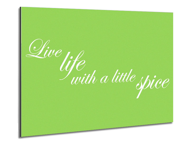 itchen Quote Live Life With A Little Spice Lime Green Printed on brushed aluminium dibond. A modern way to display art and easy to maintain.