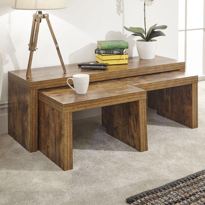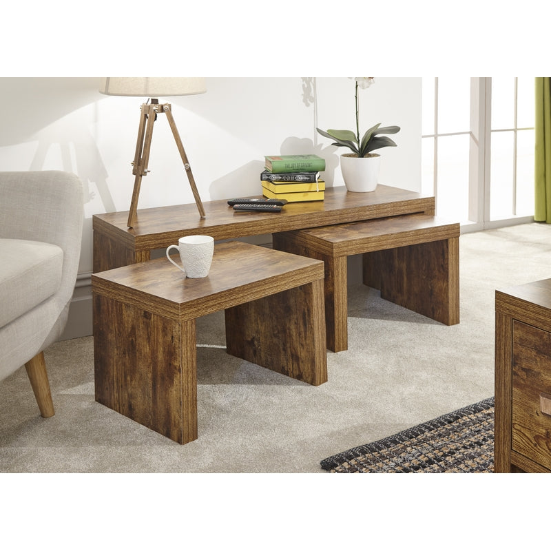 This Nest of 3 Tablesnest of tables from GFW provides the perfect blend of quality and value and is perfect for anyone looking to enhance the surroundings for themselves, their families and their guests. This well-made nest of tables will make a great addition to your living area, providing pleasingly versatile table options for any occasion, this piece will make an exceptional upgrade to any living area. Pleasing and versatile natural tones will fit in beautifully anywhere.