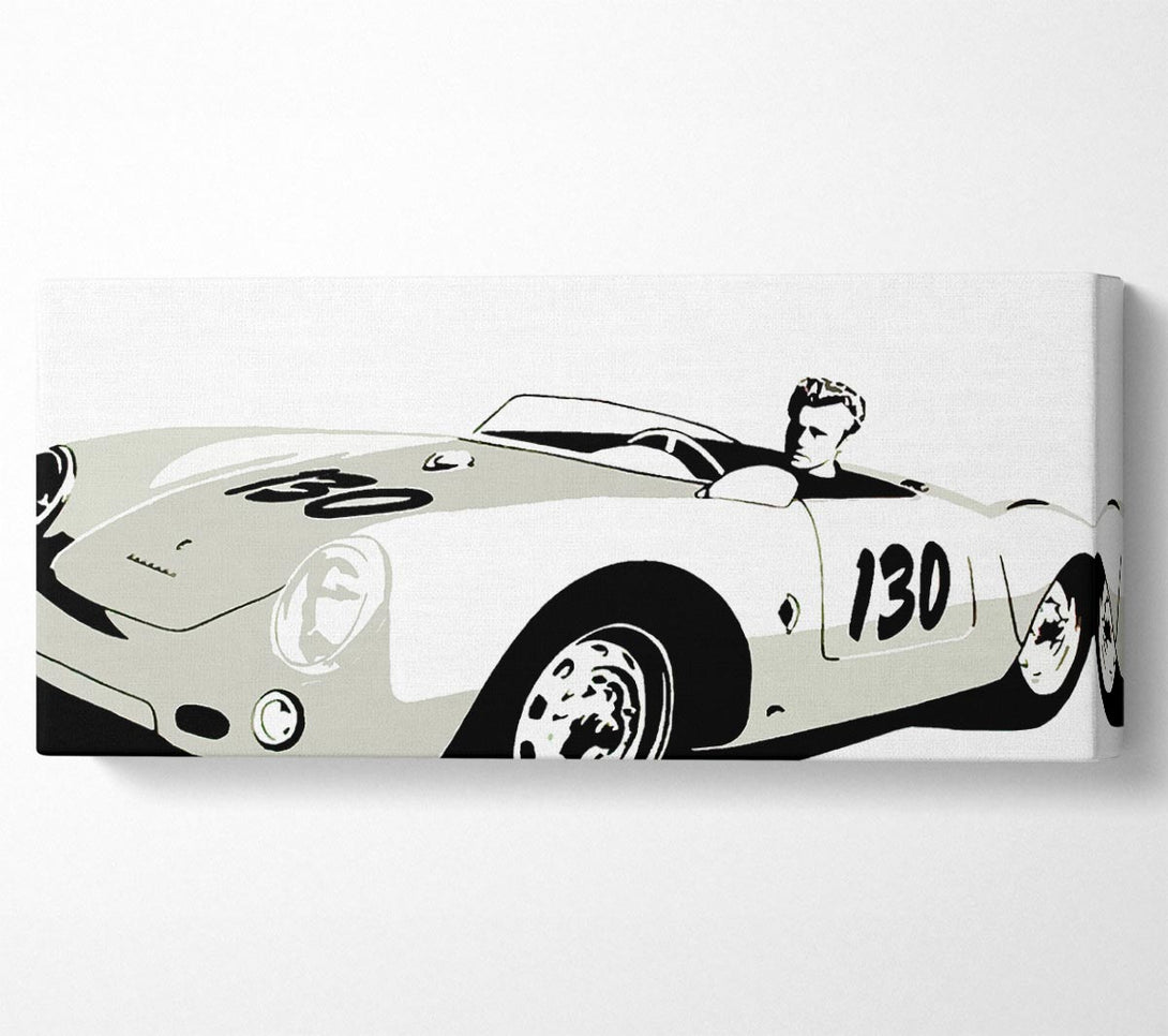 James Dean Car B n W canvas, printed on coated polyester canvas. Mounted on to a 44mm box frame, ready to hang.