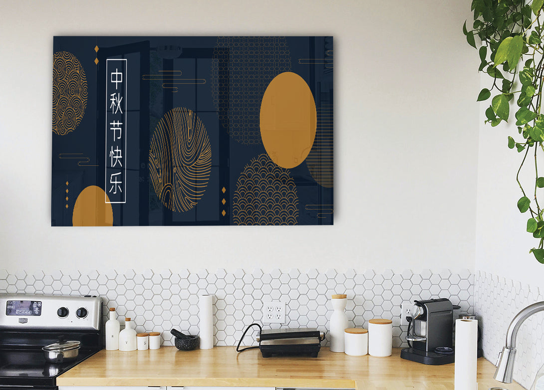Japanese Circles acrylic print, UV printed onto 5mm thick acrylic glass. Comes with everything you need to hang on your wall.