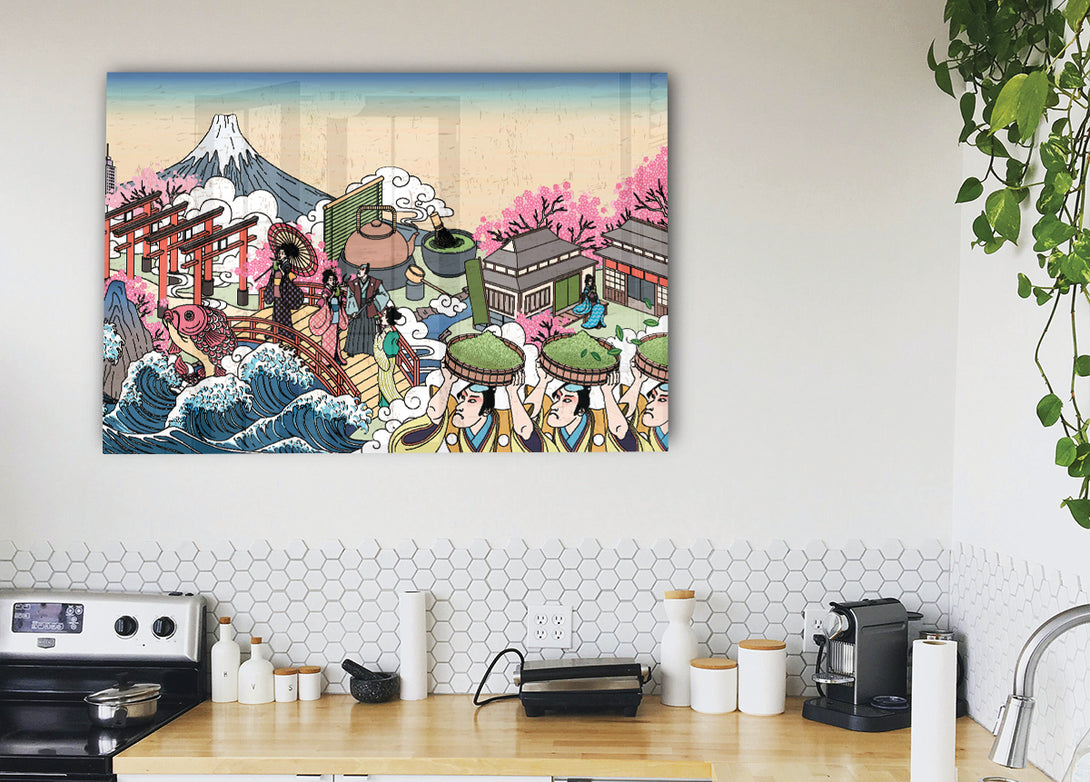 Japanese Collage Art acrylic print, UV printed onto 5mm thick acrylic glass. Comes with everything you need to hang on your wall.