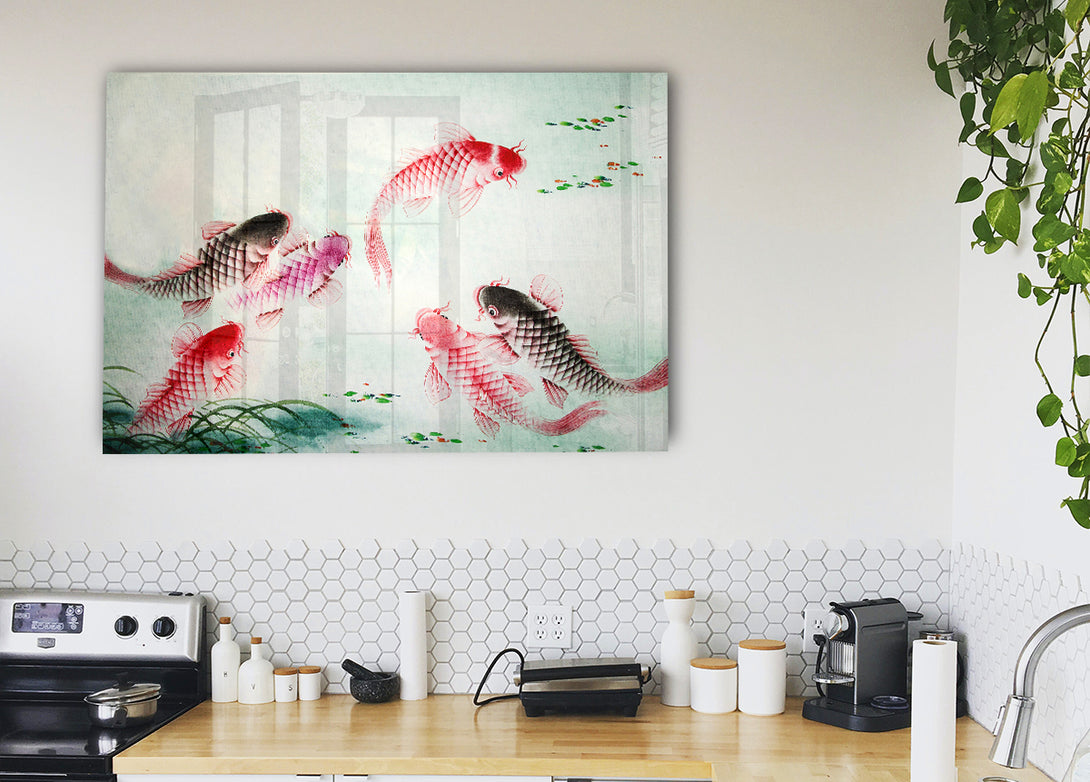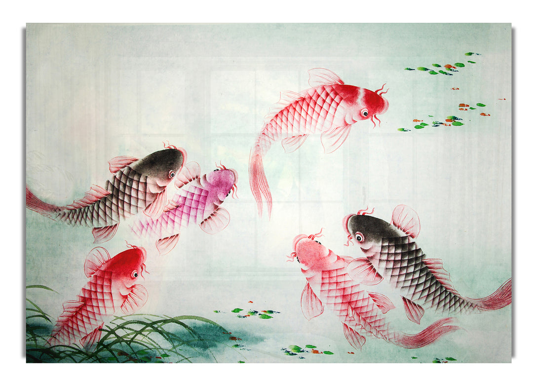 Japanese Colourful Koi acrylic print, UV printed onto 5mm thick acrylic glass. Comes with everything you need to hang on your wall.