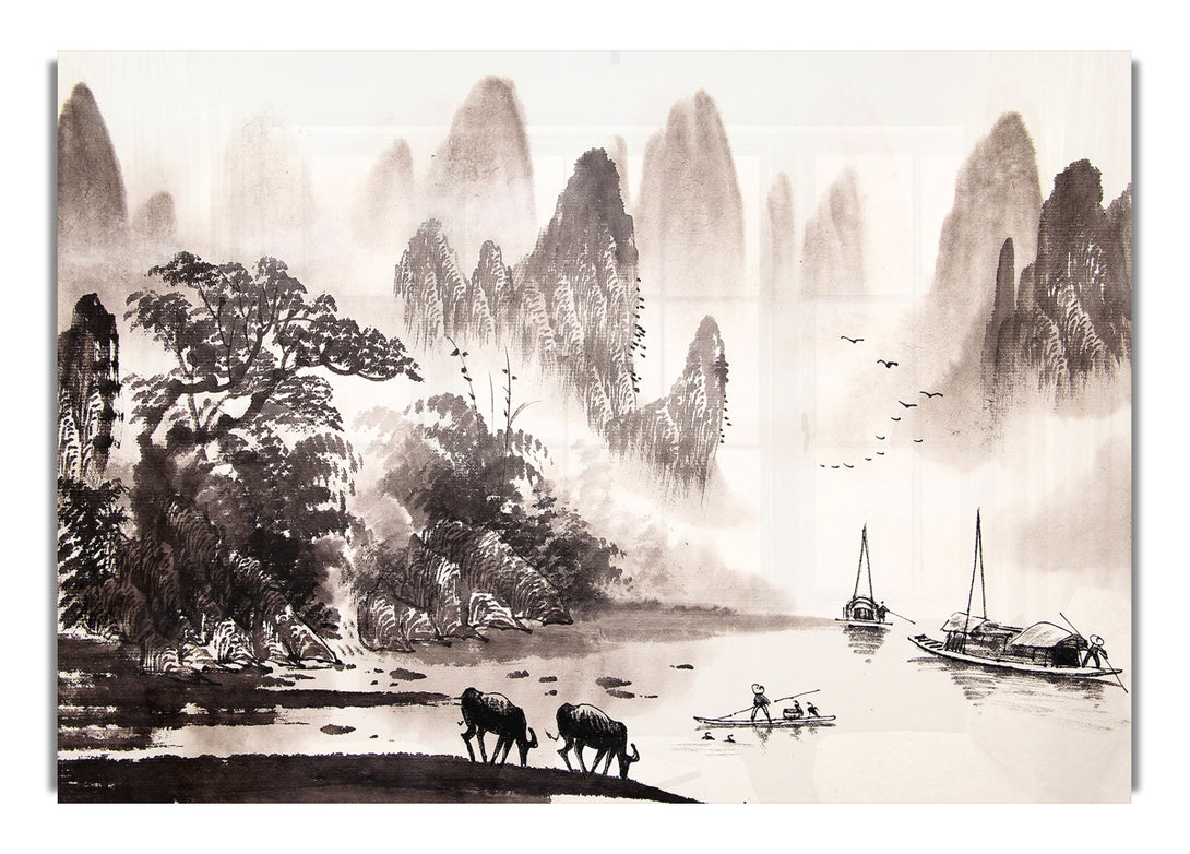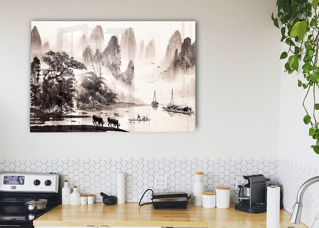 Japanese Fishing Village acrylic print, UV printed onto 5mm thick acrylic glass. Comes with everything you need to hang on your wall.