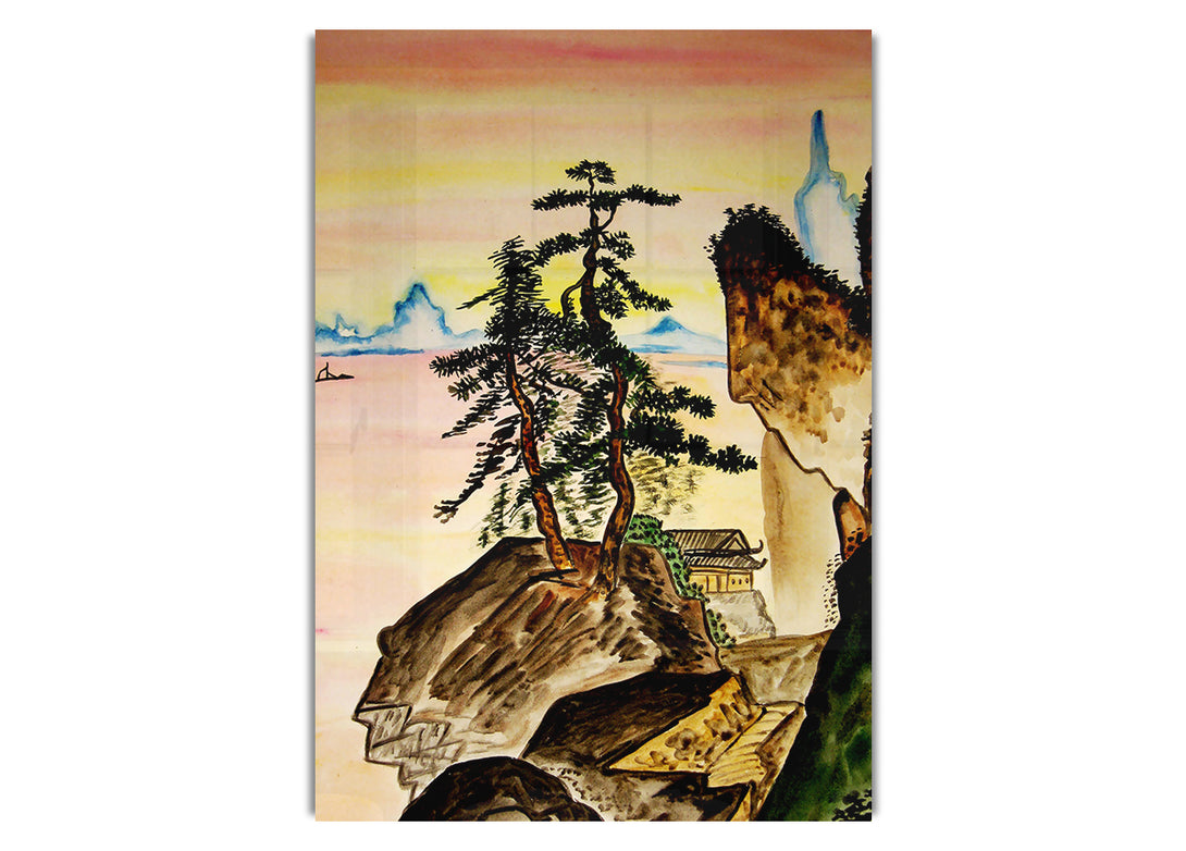Japanese Mountains Ethnic acrylic print, UV printed onto 5mm thick acrylic glass. Comes with everything you need to hang on your wall.