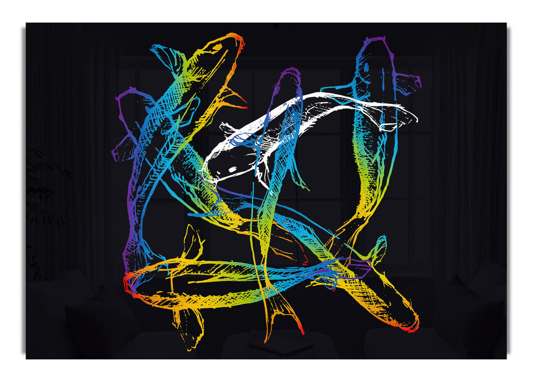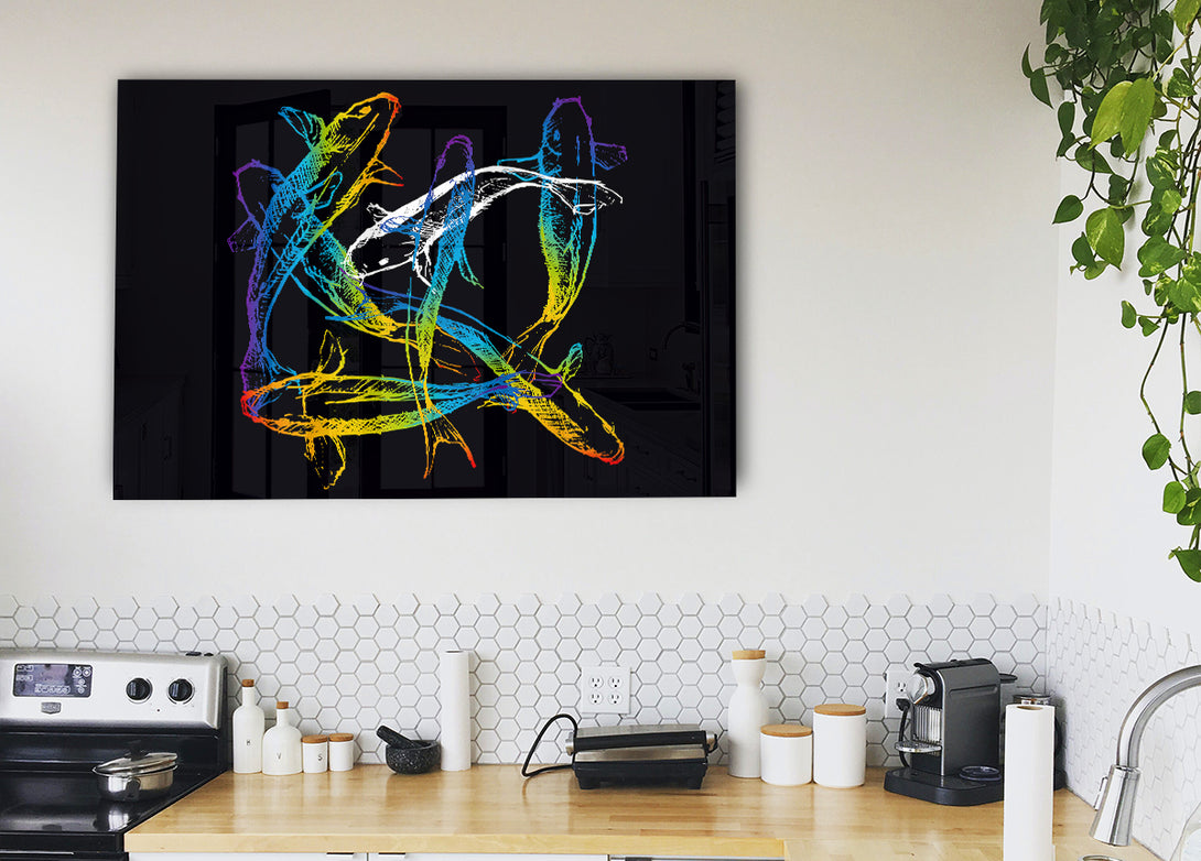 Japanese Rainbow Koi acrylic print, UV printed onto 5mm thick acrylic glass. Comes with everything you need to hang on your wall.
