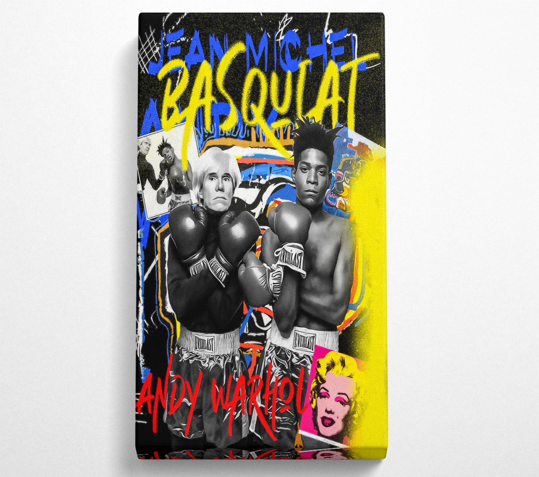 Jean Michel Basquiat Warhol wide canvas, printed on coated polyester canvas. Mounted on to a 44mm box frame, ready to hang.