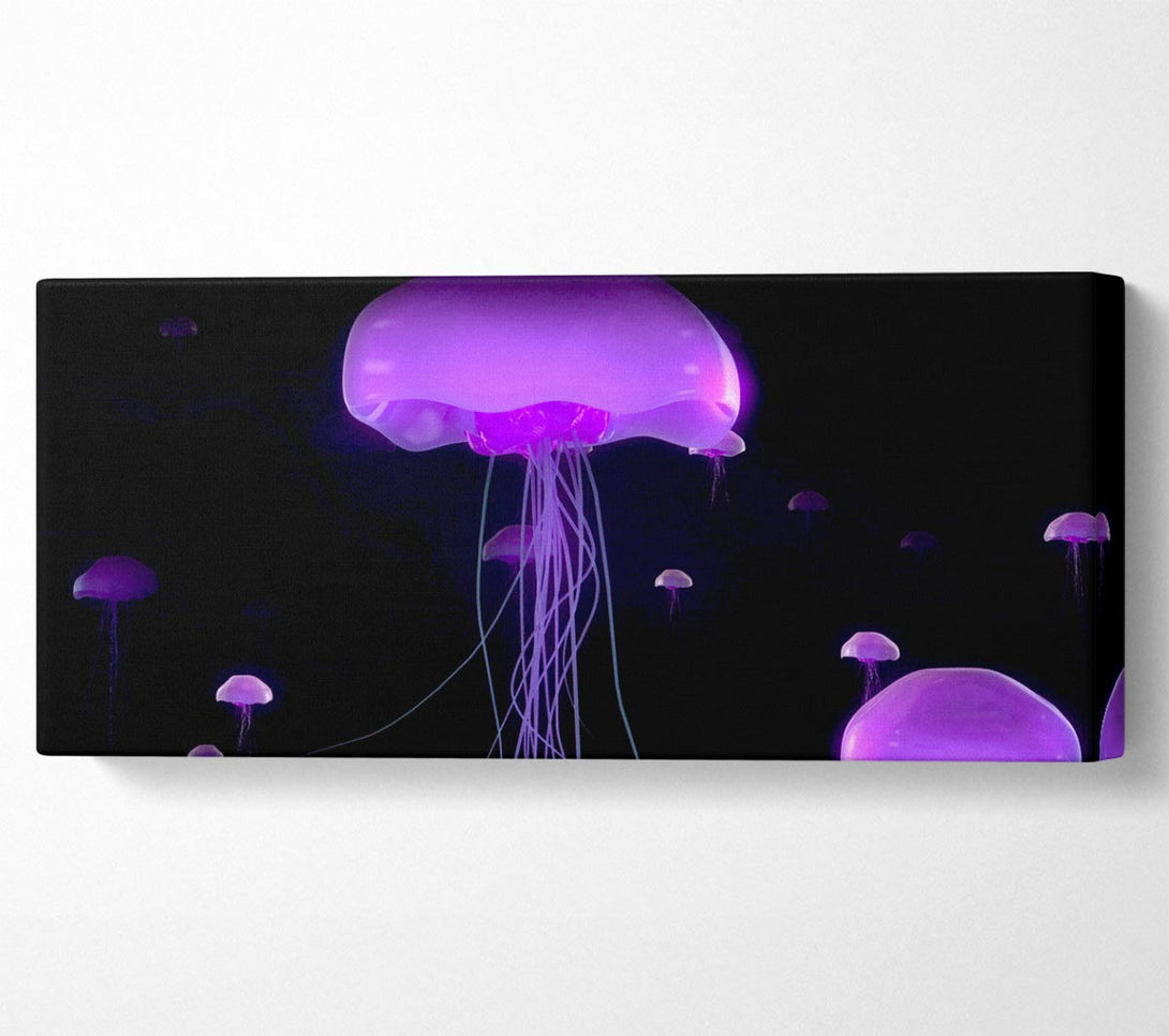 Picture of Jellyfish Lights Up The Ocean Panoramic Canvas Wall Art