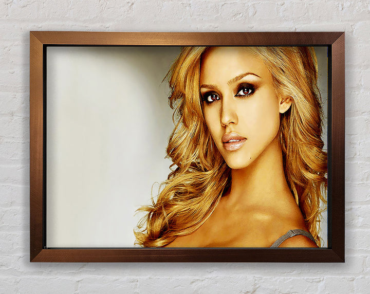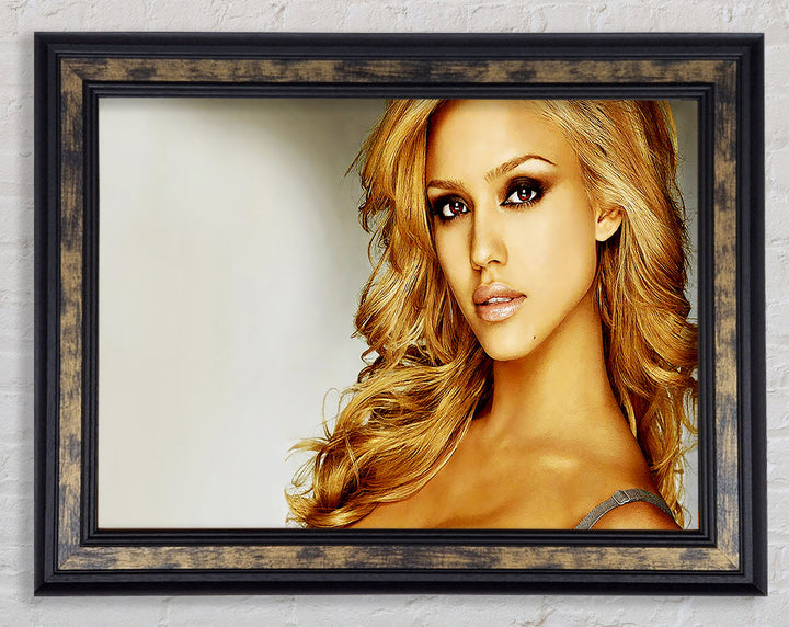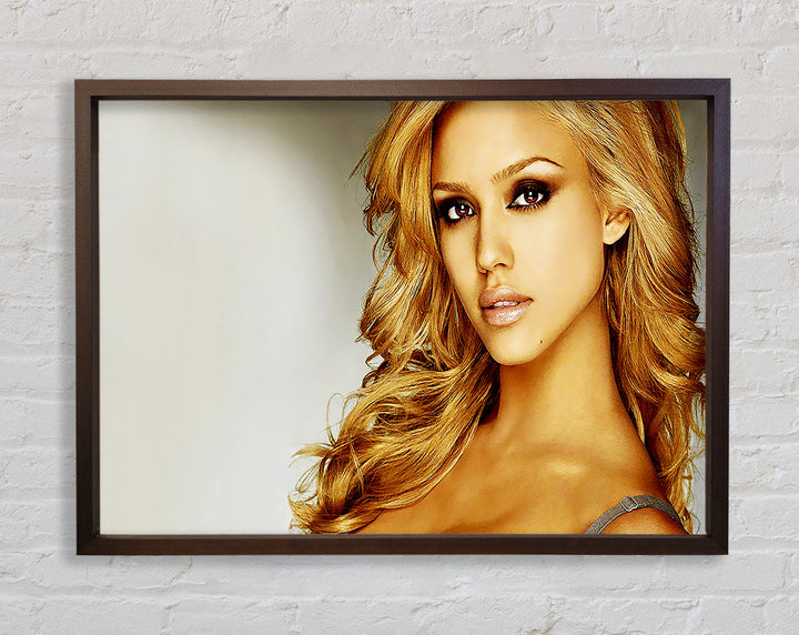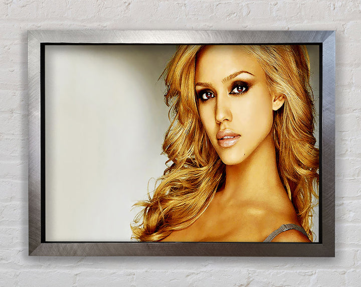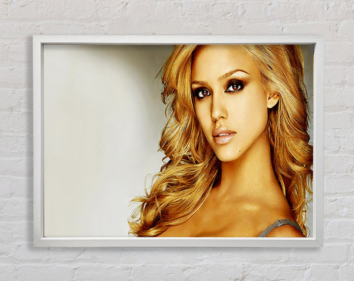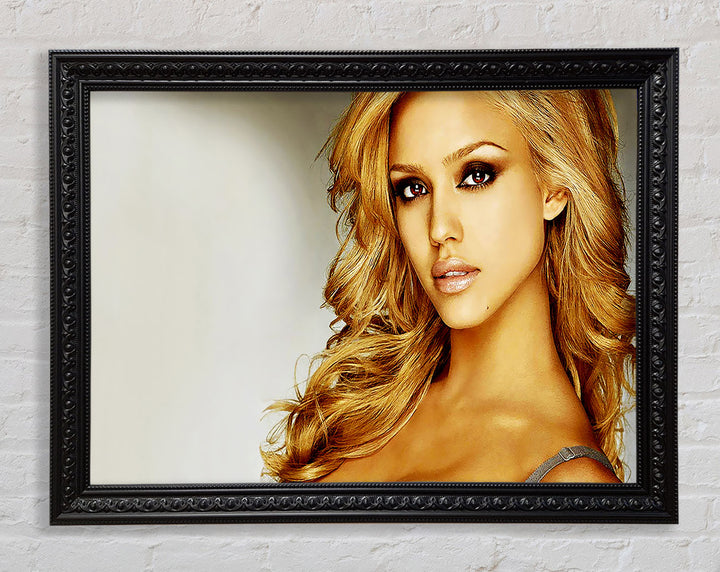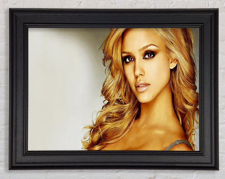 Add a touch of Hollywood glamour to your home with the Jessica Alba Framed Print. This stunning piece of framed art is available in six sizes, from small to oversized, ensuring a perfect fit for any space. Choose from a variety of colors to match your decor. Each print is handmade in the United Kingdom, guaranteeing exceptional quality and craftsmanship. The Jessica Alba Framed Print comes ready to hang, making it easy to add instant style to your living room, bedroom, or office. Enhance your space with this elegant and eye-catching artwork that celebrates one of Hollywood's brightest stars.