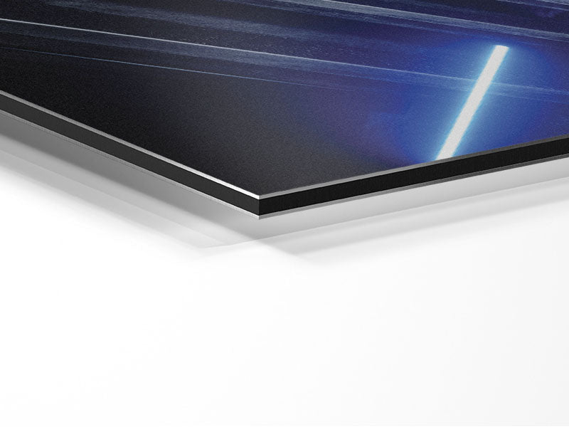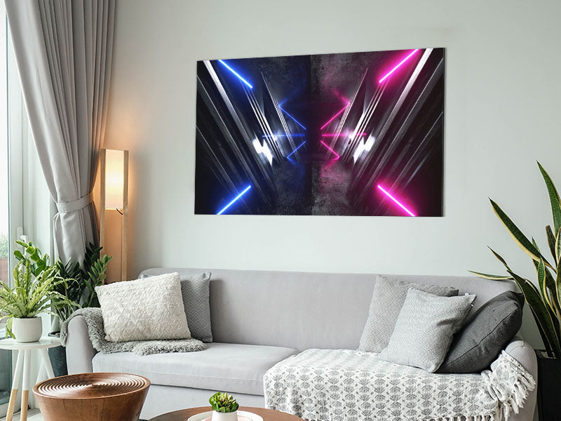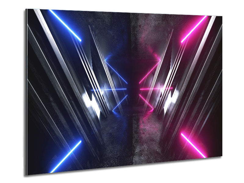 Jets of neon blue and pink Printed on brushed aluminium dibond. A modern way to display art and easy to maintain.