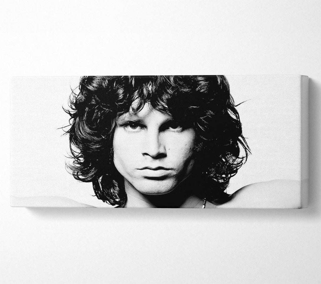 Jim Morrison Face canvas, printed on coated polyester canvas. Mounted on to a 44mm box frame, ready to hang.