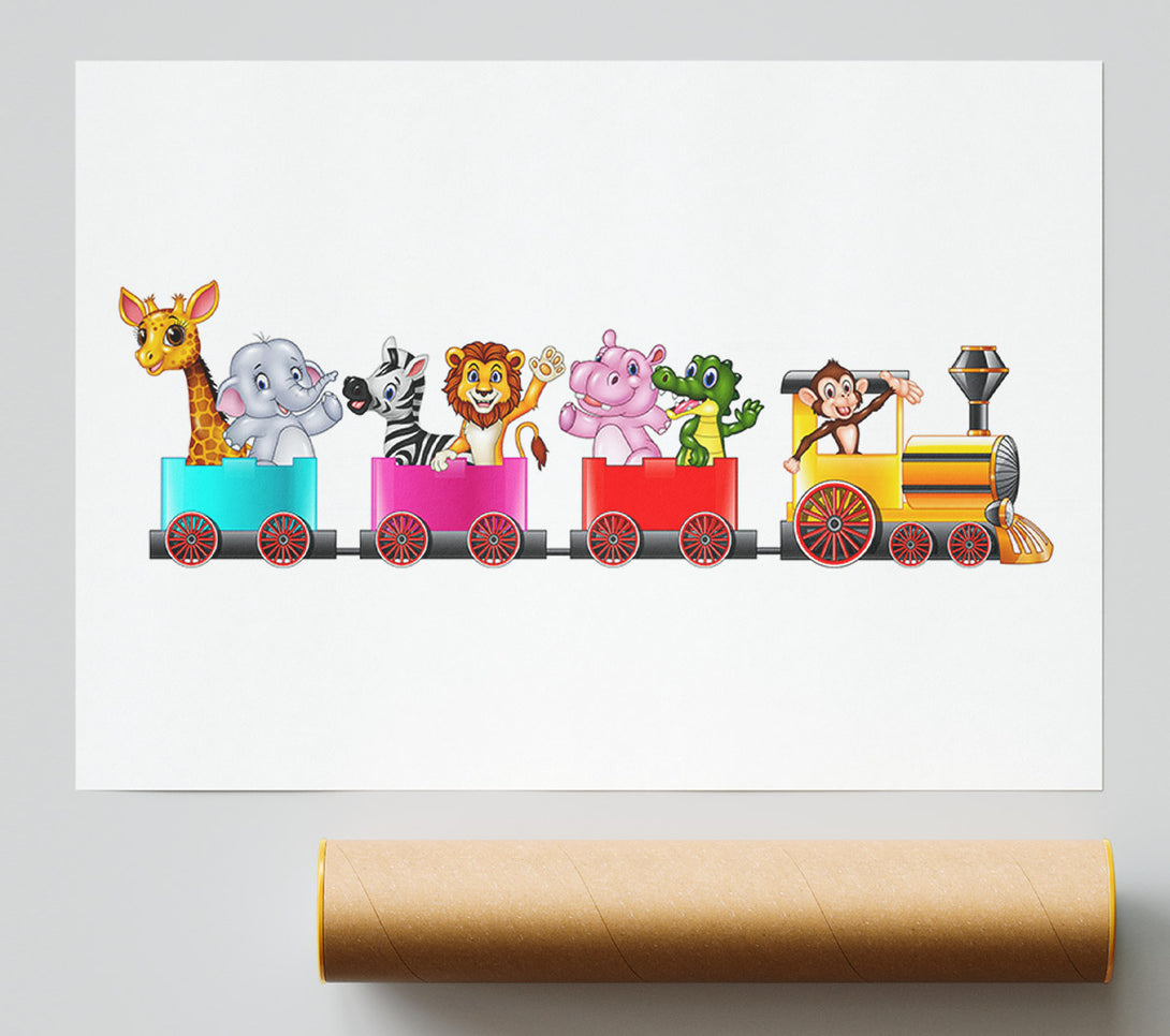 Our Jungle Friends Train Poster is printed 260 GSM premium lustre paper that offers vibrant colours and exceptional detail.