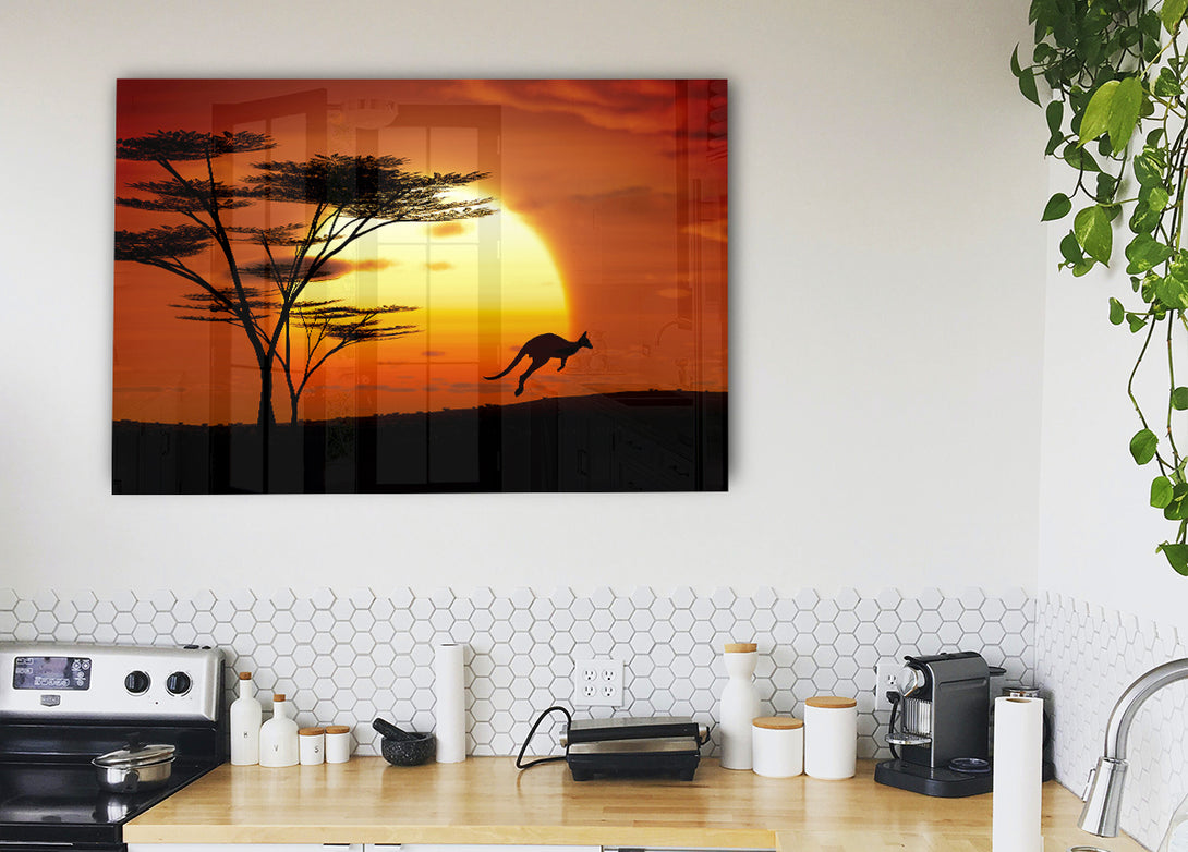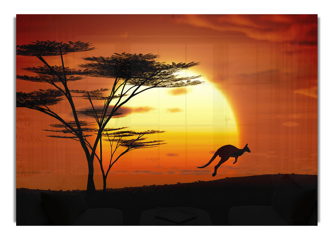 Kangaroo Sun Glow acrylic print, UV printed onto 5mm thick acrylic glass. Comes with everything you need to hang on your wall.