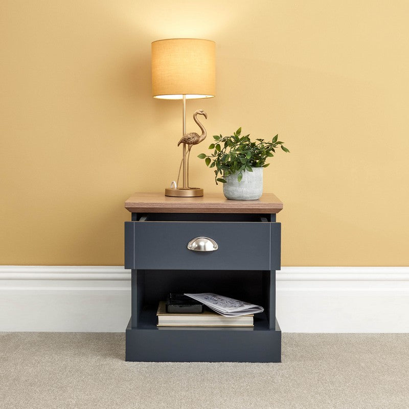 Kendal Bedside Table Blue 1 Shelf 1 Drawer