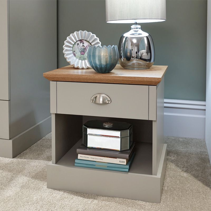 Kendal Bedside Table Grey 1 Shelf 1 Drawer