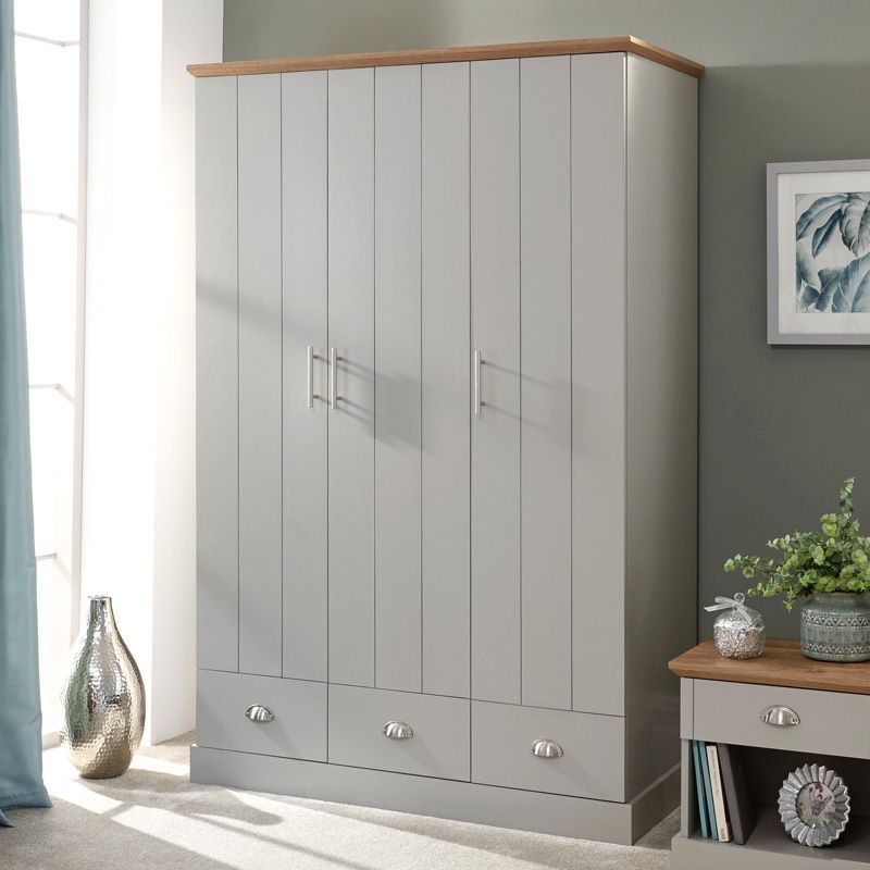 Kendal Tall Wardrobe Grey 3 Doors 1 Shelf 3 Drawers