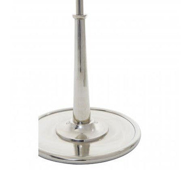 This mirror has bevelled edging and metal tips in a fine metallic silver finish. This vertical mirror is mounted on a decorative nickel coated stand with a round base, that allows adjusting it as needed.