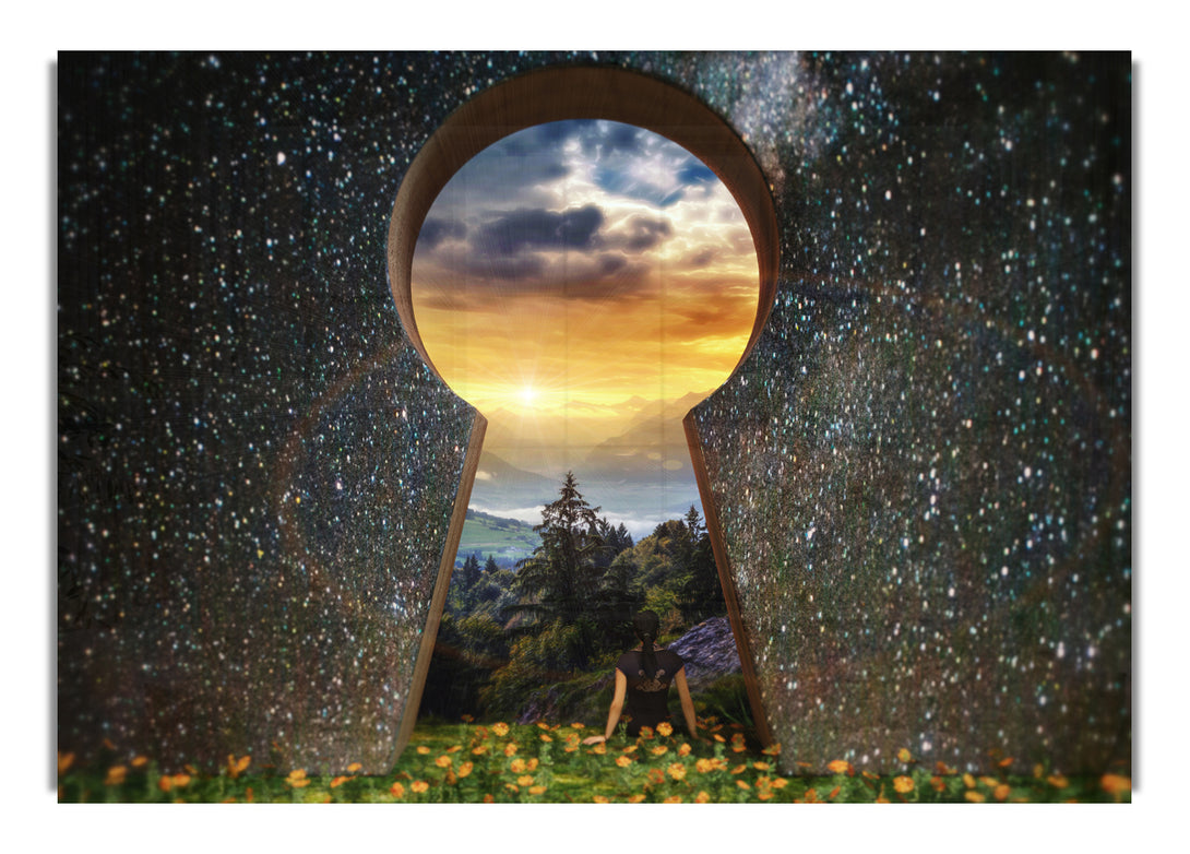 Key Hole Universe acrylic print, UV printed onto 5mm thick acrylic glass. Comes with everything you need to hang on your wall.