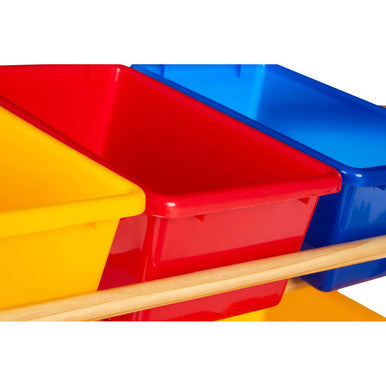A fun piece of furniture, its three shelves each hold a trio of colourful plastic storage boxes, ideal for keeping the playroom or bedroom floor free from clutter. The frame's design means that each box sits at a slight angle, making access nice and easy.