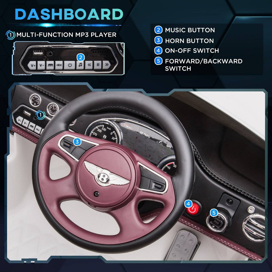 With this Bentley Mulsanne licensed parental control car from HOMCOM, kids can cruise in style as they listen to their music, using the AUX and USB port or the TF card slot, or they'll listen to the pre-installed tracks. With a steering wheel, horn and LED lights, it'll feel like driving a real car. Seatbelt for safety, whilst the wide wheels and suspension system keep the ride smooth. Adults can join the fun using the remote control, so the whole family can enjoy this snazzy baby electric car.