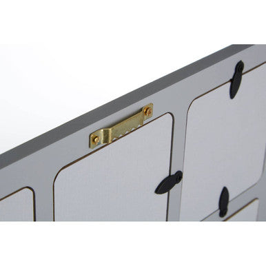 Display up to eight photographs with this heart themed grid frame. Made from strong MDF, and is easy to hang thanks to the metal clips on its back. Featuring different shades of pink, a large heart decorates its centre. A simple clip system at the back makes it easy to insert and replace photographs.