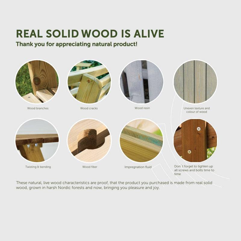 A sand pit is an essential for anyone with children and outdoor space. This robust model will provide lots of fun for years to come. Wood, with the right care and attention, solid wooden garden furniture can last a lifetime. It doesn’t rust like metal and neither will it lose its colour in the sun like some plastic garden furniture.