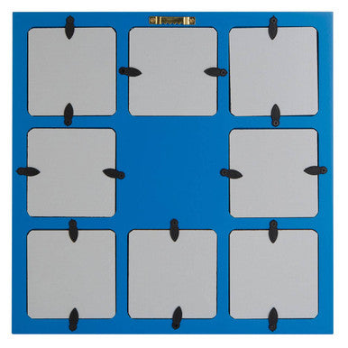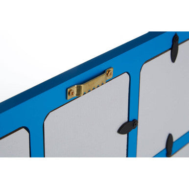 Display up to eight photographs with this star themed grid frame. Its made from strong MDF, and is easy to hang thanks to the metal clips on its back. Featuring different shades of blue, a large star decorates its centre. A simple clip system at the back makes it easy to insert and replace photographs.