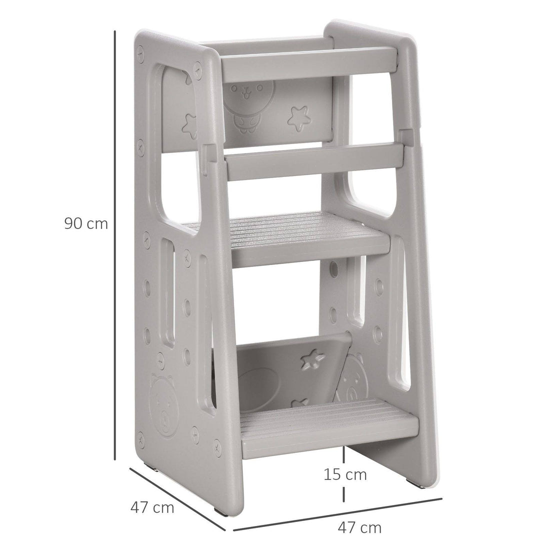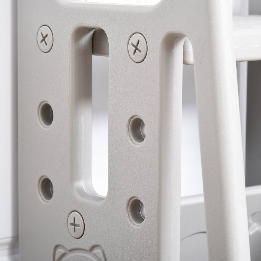HOMCOM Kids Step Stool helps cultivate your little one's good habits of independence! The standing tower is pretty useful and perfectly matches your kids. It is suitable for many occasions such as the kitchen, washroom, and dining room, enabling your children to brush their teeth, wash their faces and help in the kitchen. Made of HDPE material, the step stool for children is non-toxic and has no unpleasant odor. Trapezoid structure enhances the stability and balance of this toddler stool.