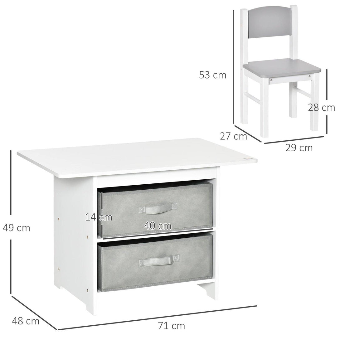 Children can eat, play and relax with this three-piece set from HOMCOM. The matching set of chairs is perfect for playdates, their friends and siblings. It's their own personal space, where they can keep their toys, books and snacks in the drawers, ensuring your home stays tidy. Made from MDF material, it's durable and easy to clean, maintaining good hygiene. The soft round edges helps prevent children from hurting themselves. Their own area for endless activities, thanks to this mini set.